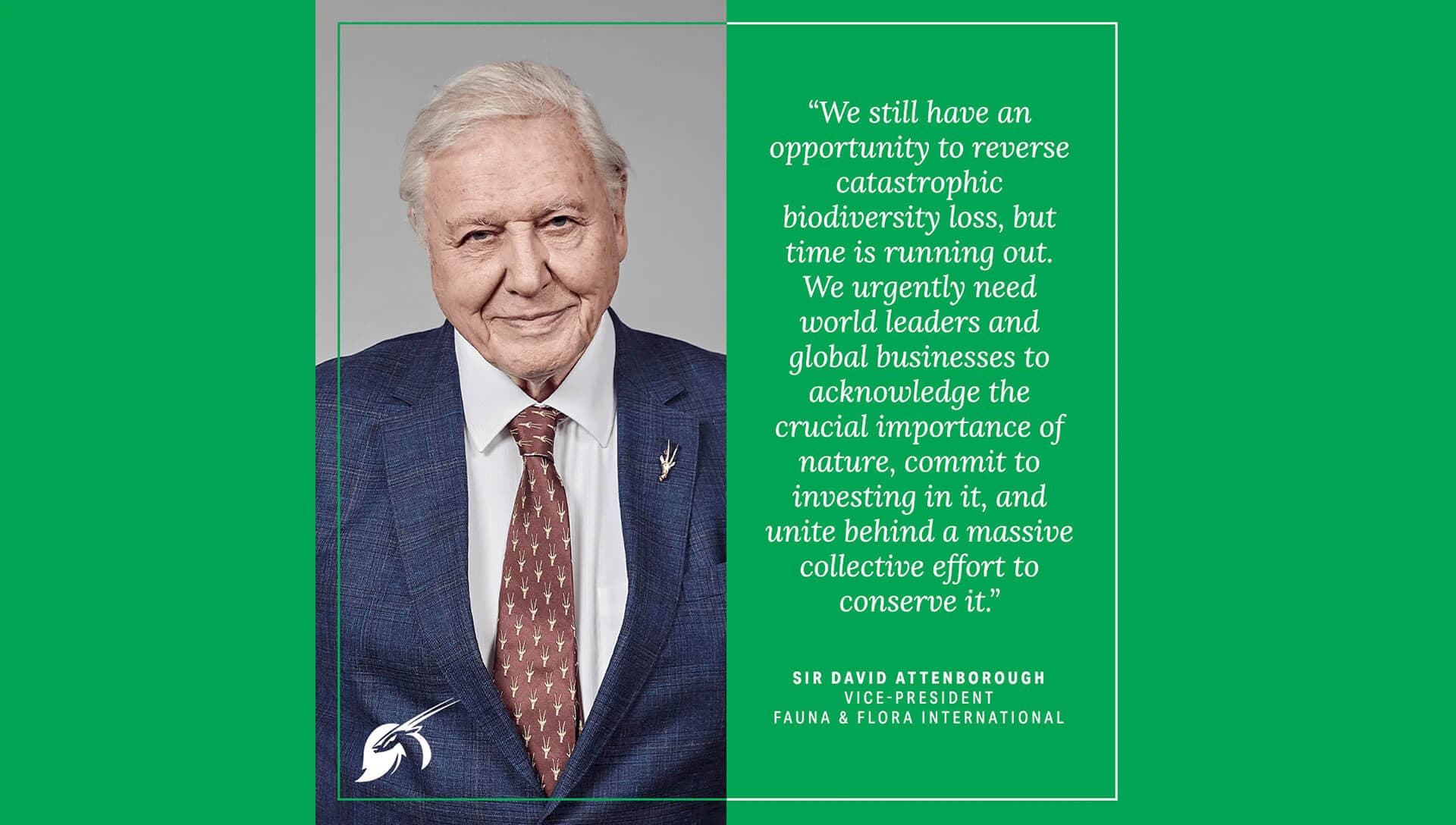 Werelds oudste internationale natuurbeschermingsorganisatie – Fauna & Flora International (FFI) – wilde natuurbehoud bovenaan de internationale politieke agenda plaatsen en de financiering ervan veranderen. Met de hulp van Sir David Attenborough eisten we aandacht van de VN.